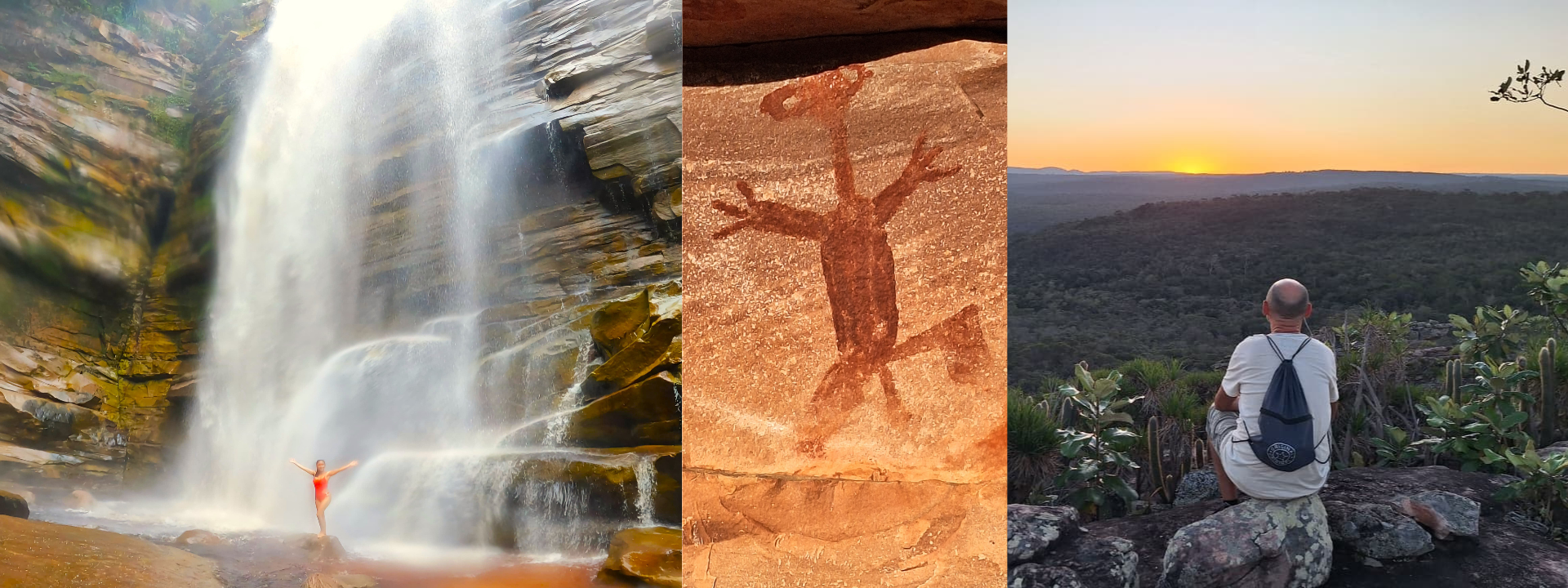 Uma grande cachoeira com uma queda imponente e perfeita para um banho tranquilo. Depois, as pinturas rupestres de 8000 anos atrás do Parque Arqueológico da Serra das Paridas.